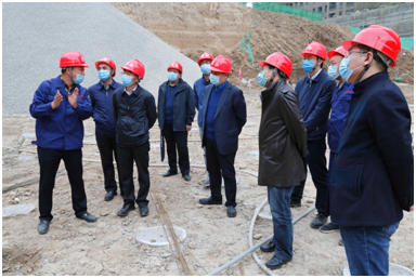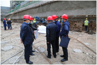 4月15日,山西省建设科技集团党委书记、董事长韩瑞林,党委副书记、副董事长田文俊,办公室负责人李晨凯一行4人来到我公司基础二处承建的太原市晋阳街名汇广场基坑支护工程项目现场检查指导复工复产工作 。公司董事长李永伟、总经理党军 、总经理助理李宇峰、市场部主任杜洁林、基础二处主任乔中鑫等随同。
