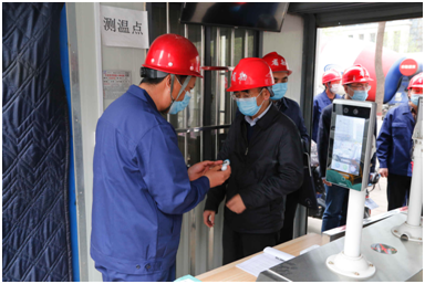 韩瑞林一行在项目入口处测温登记