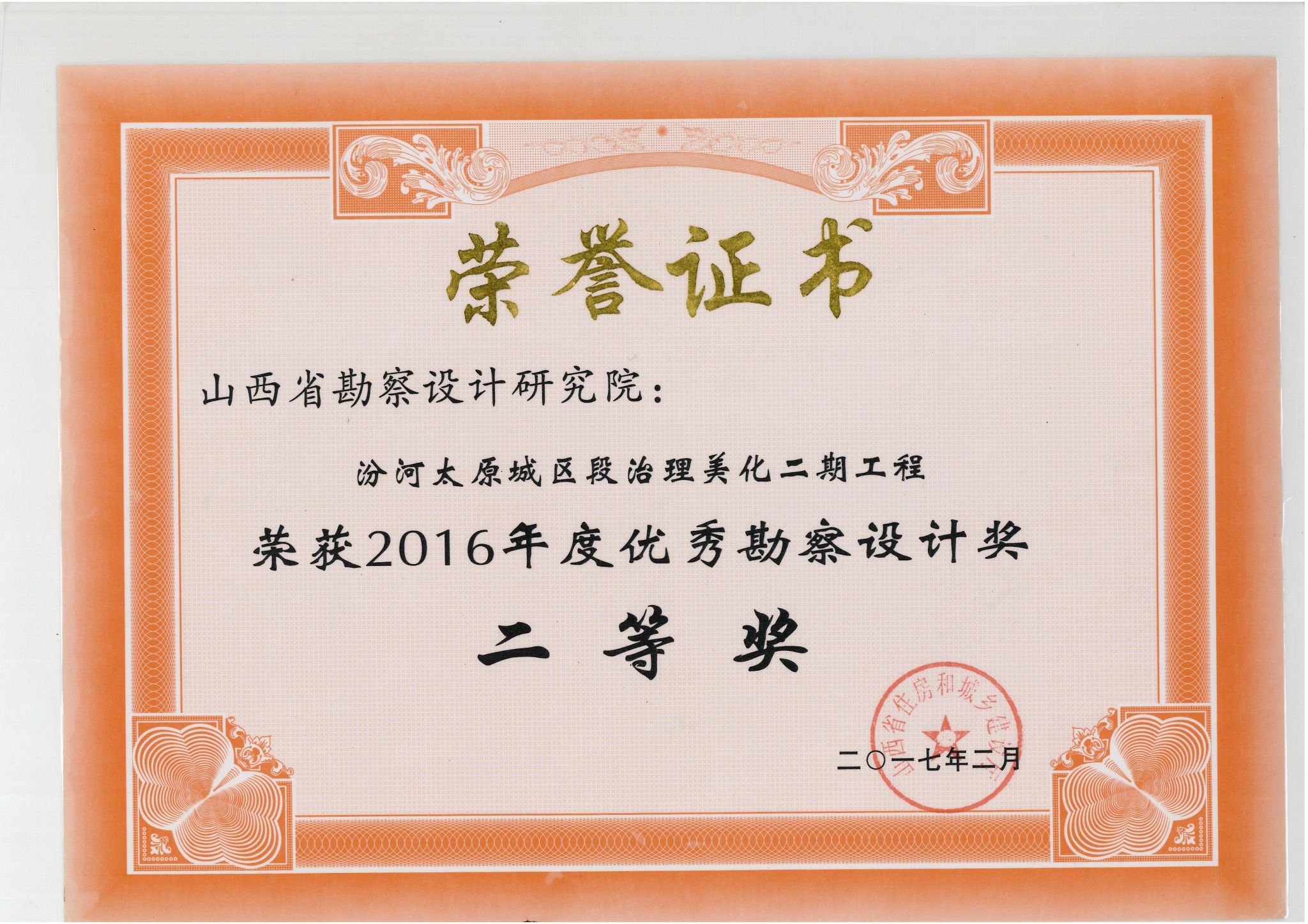 汾河太原城区段治理美化二期工程优秀勘察设计二等奖