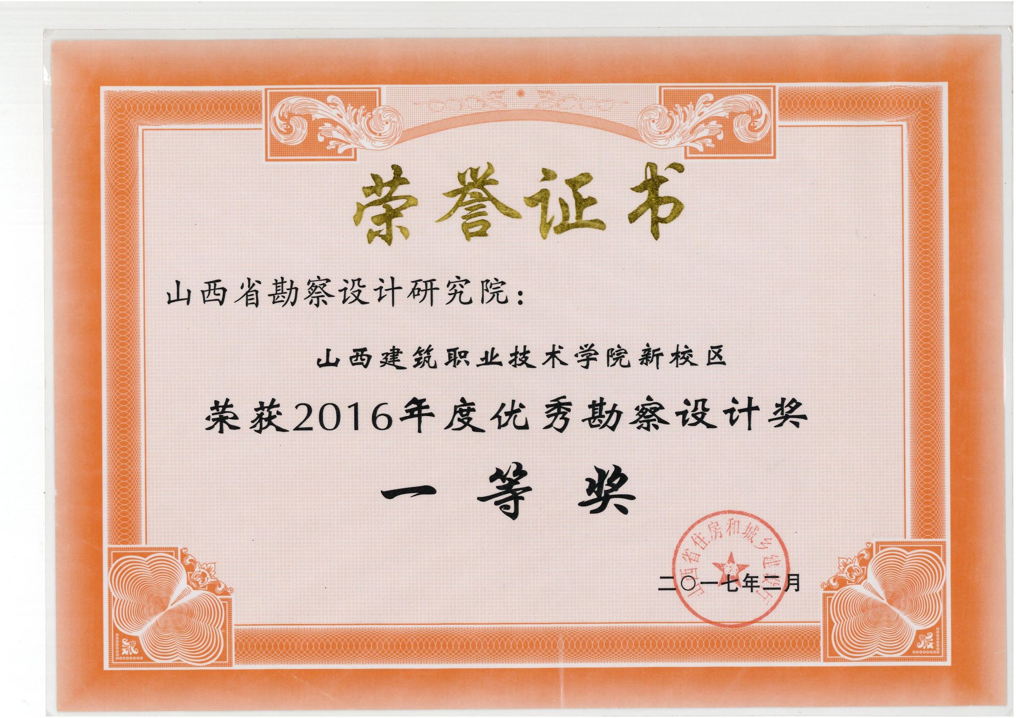 山西建筑职业技术学院新校区优秀勘察设计一等奖