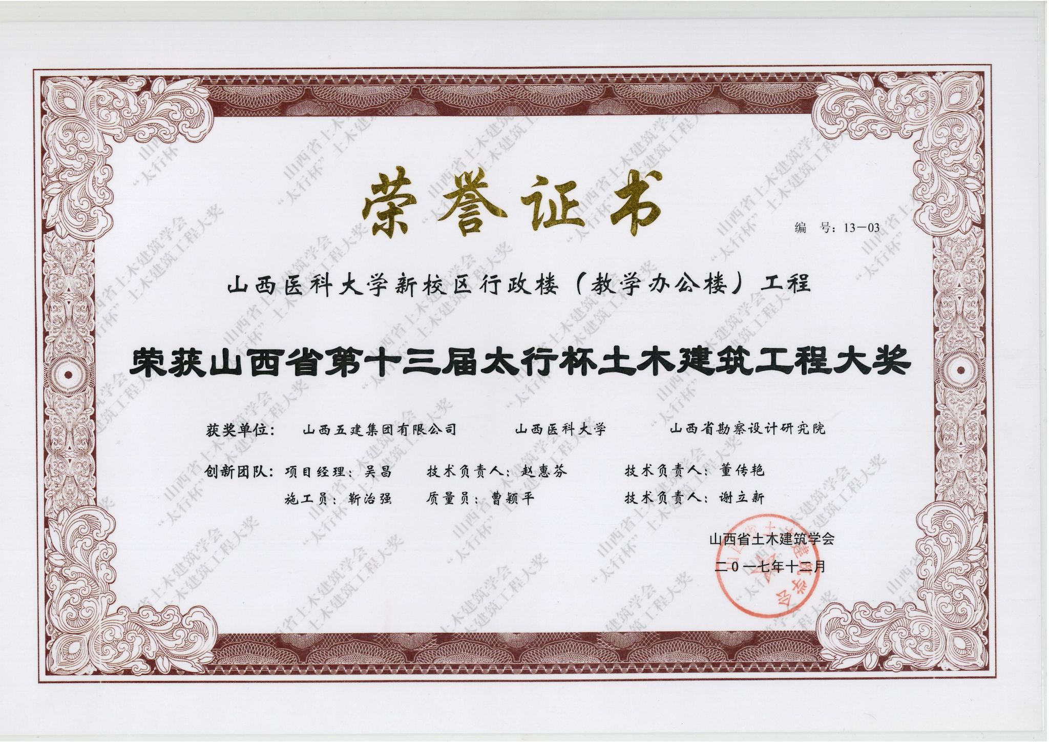 第十三届:山西医科大学新校区行政楼(教学办公楼)工程